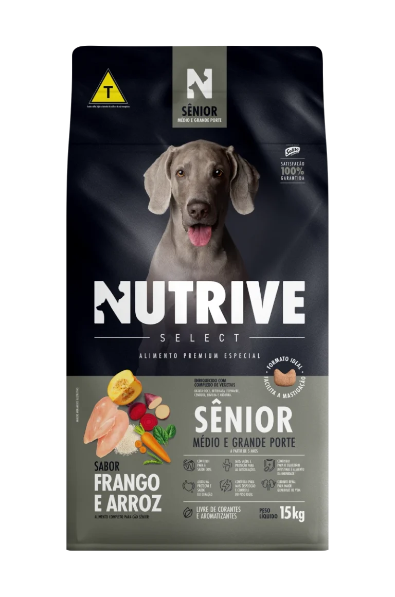 Alimento específico indicado para cão sênior de médio porte (a partir de 07 anos) e grande porte (a partir de 05 anos).