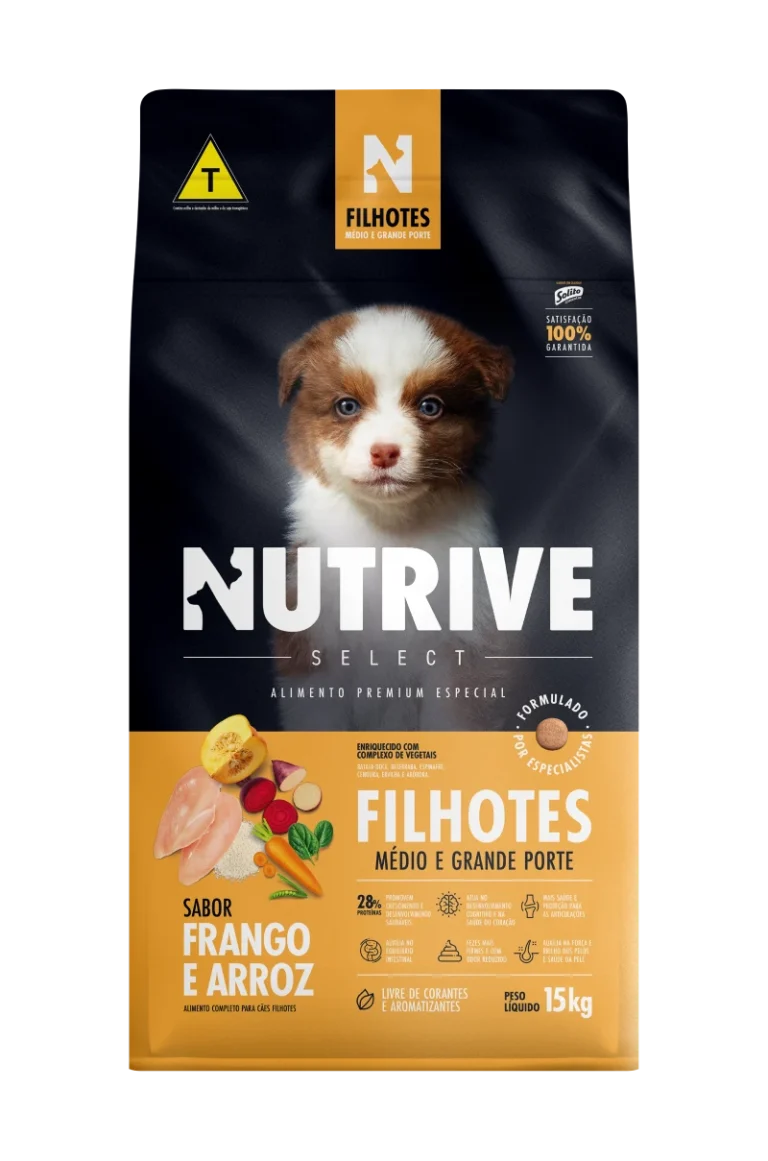 Alimento completo indicado para cães filhotes de médio porte (até 12 meses) e grande porte (até 18 meses).